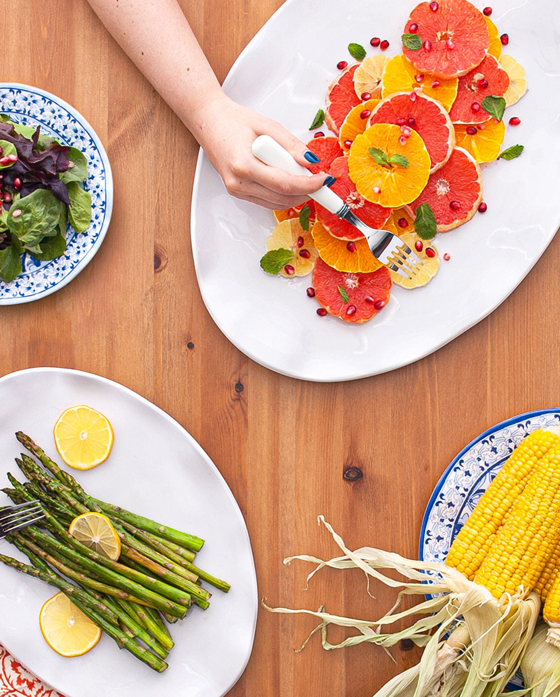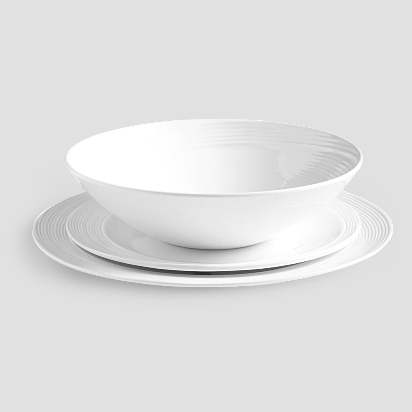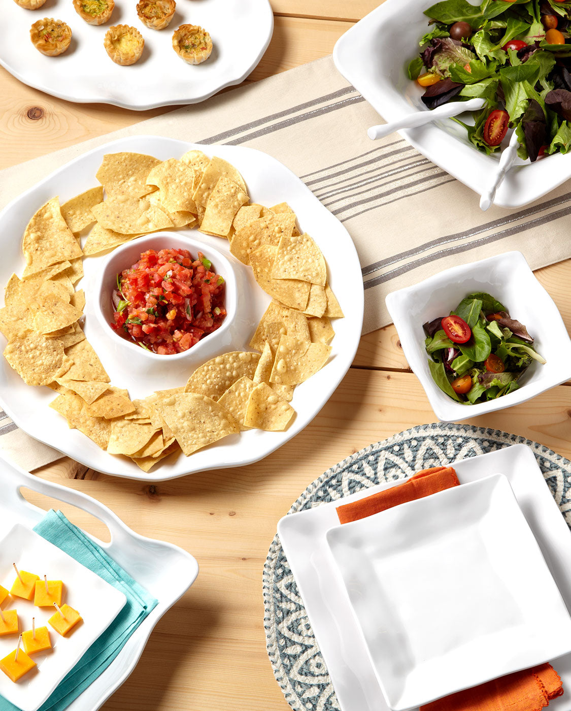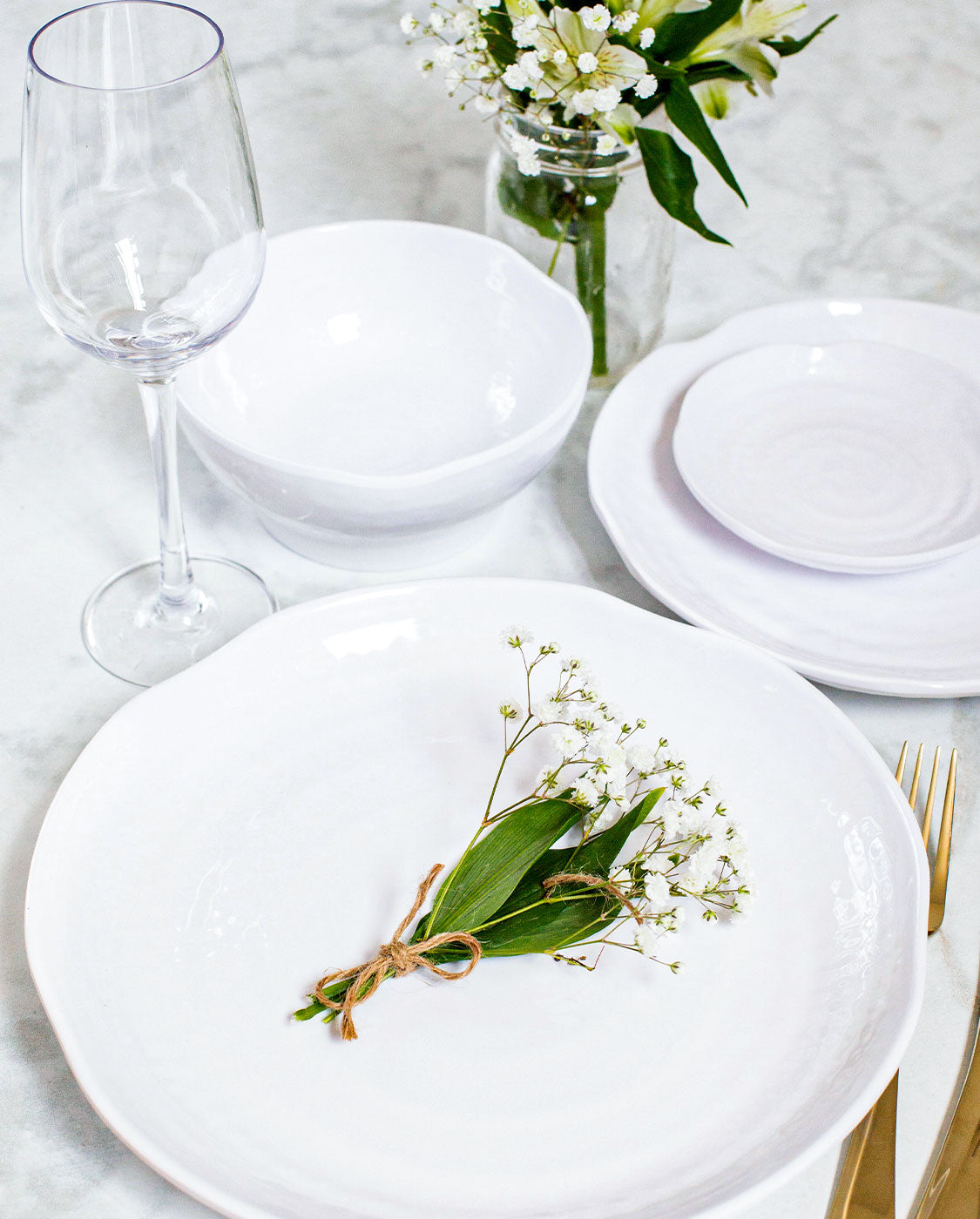 Glossy white plates and bowls that make even simple meals look lovely—and go straight into the dishwasher afterward.