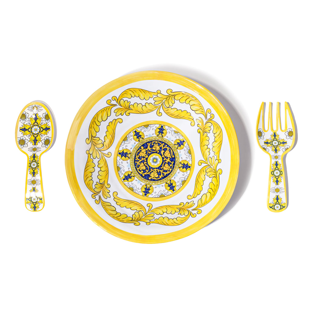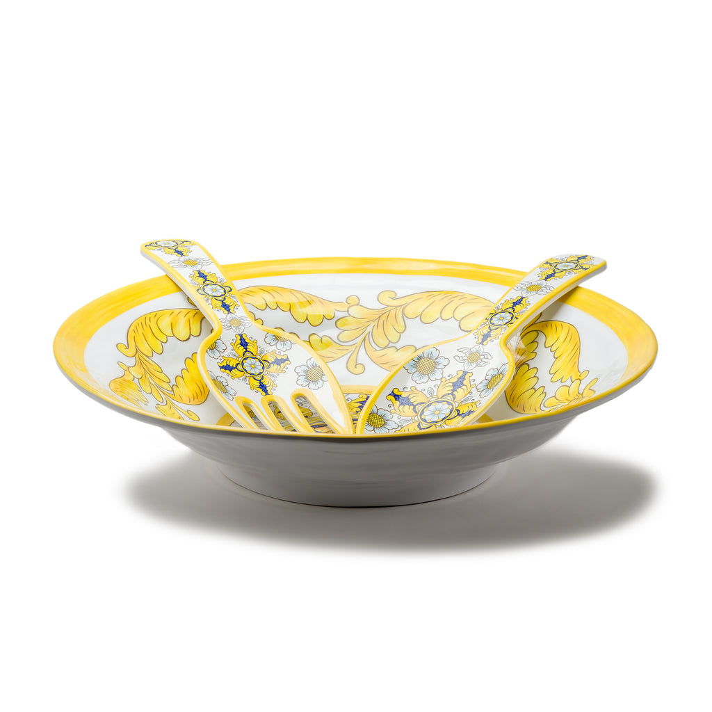 Bright, bold, and effortlessly chic, the Barocco in Yellow Salad Serving Set brings a touch of Mediterranean charm to your table. Featuring a sunny yellow and white floral motif, this elegant melamine bowl is perfect for serving everything from crisp salads to vibrant pastas. Paired with coordinating serving utensils, it’s a must-have for effortless entertaining with a splash of color.