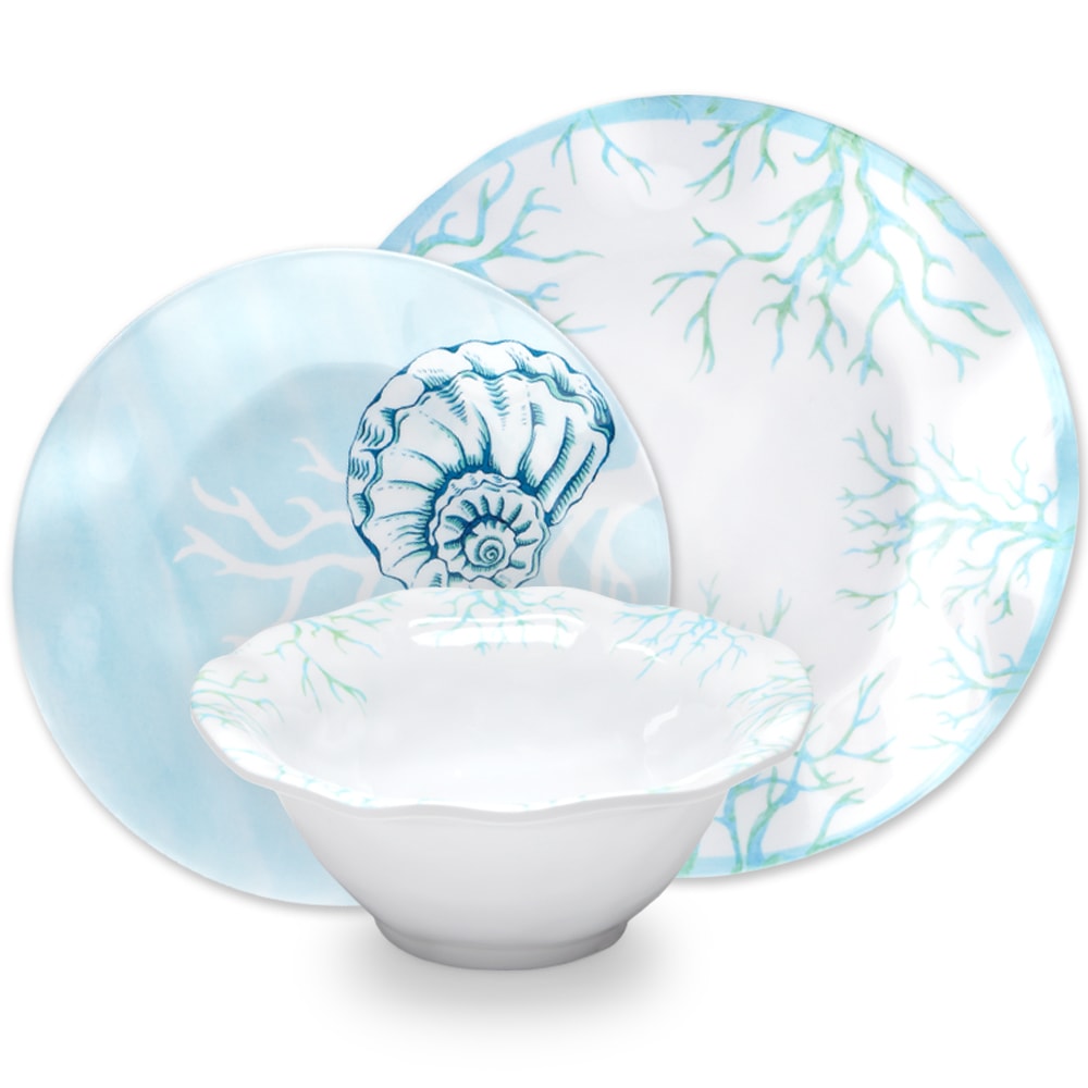Our Captiva 12pc dinnerware set features a tranquil sea life design perfect for both indoor and outdoor dining. Beachy yet polished, this 12pc dinnerware set will make dinnertime a vacation.