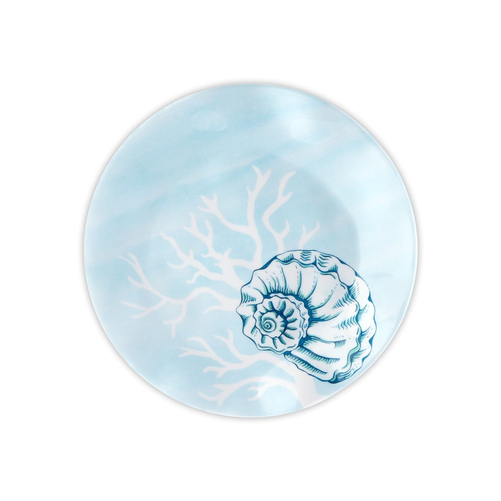 Our Captiva salad plate features a tranquil sea life design perfect for both indoor and outdoor dining.