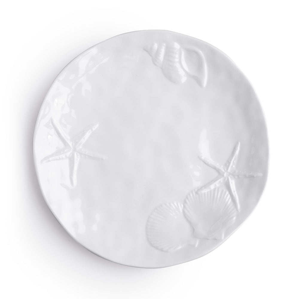 The Captiva Sea Life White Melamine Dinnerware features a classic sea life design, elevated by our signature luxe white melamine and pairs perfectly with our Captiva Collection.
