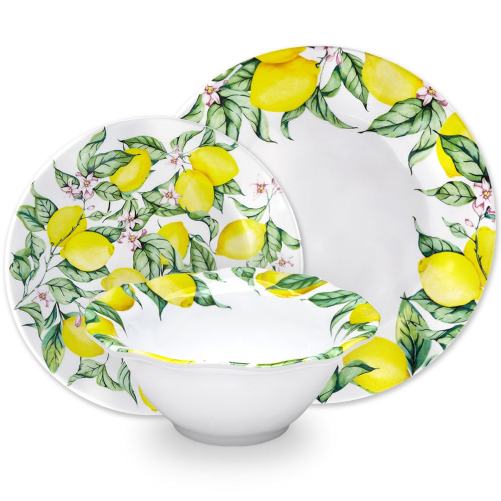 Our Limonata 12pc dinnerware set features fresh cascades of lemons and blossoms. This 12pc dinnerware set from our Limonata series is a citrus filled delight.