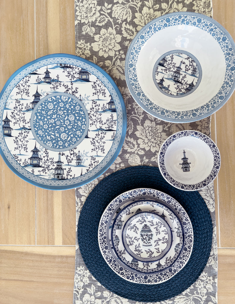 Blue and white designs reminiscent of Asian ceramics bring sophistication to your meals. Made of 100% melamine, this BPA free dinnerware is virtually unbreakable and easily mistaken for ceramic or porcelain.