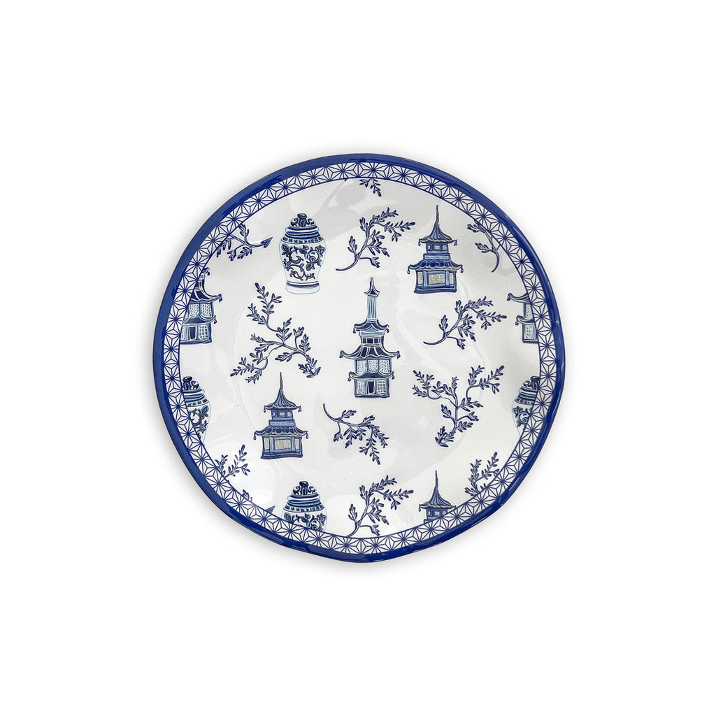 Blue and white designs reminiscent of Asian ceramics bring sophistication to your meals. Made of 100% melamine, this BPA free dinnerware is virtually unbreakable and easily mistaken for ceramic or porcelain.