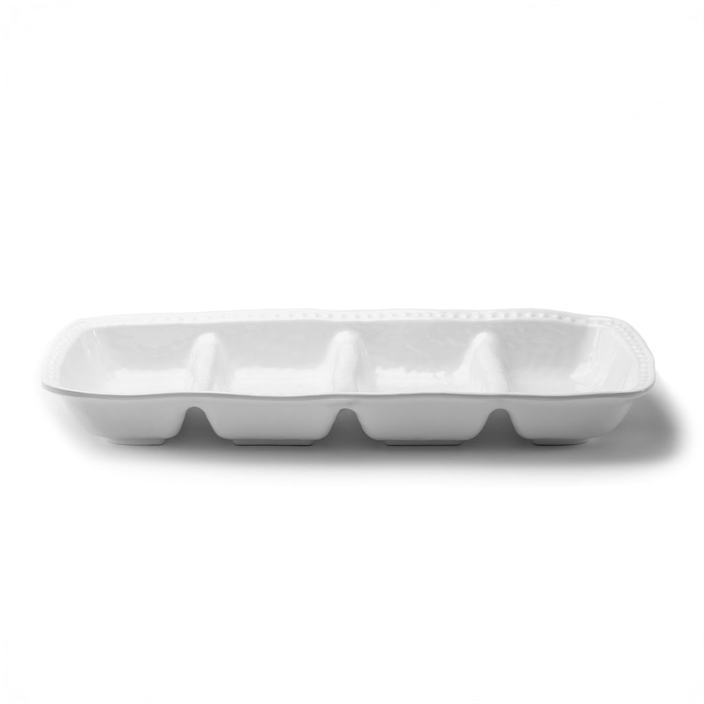 Designed for effortless elegance, the Hampton Collection Quad Snack Bowl features four perfectly portioned sections, ideal for serving a variety of appetizers, nuts, or dipping sauces. With its hammered texture and beaded edge, this piece blends classic charm with modern durability. Crafted from premium melamine, it offers the beauty of fine serveware with the convenience of shatterproof, lightweight design—perfect for any gathering.