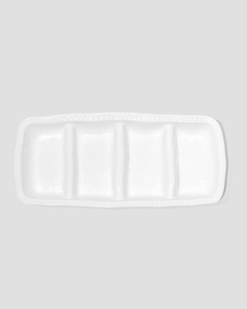 Designed for effortless elegance, the Hampton Collection Quad Snack Bowl features four perfectly portioned sections, ideal for serving a variety of appetizers, nuts, or dipping sauces. With its hammered texture and beaded edge, this piece blends classic charm with modern durability. Crafted from premium melamine, it offers the beauty of fine serveware with the convenience of shatterproof, lightweight design—perfect for any gathering.