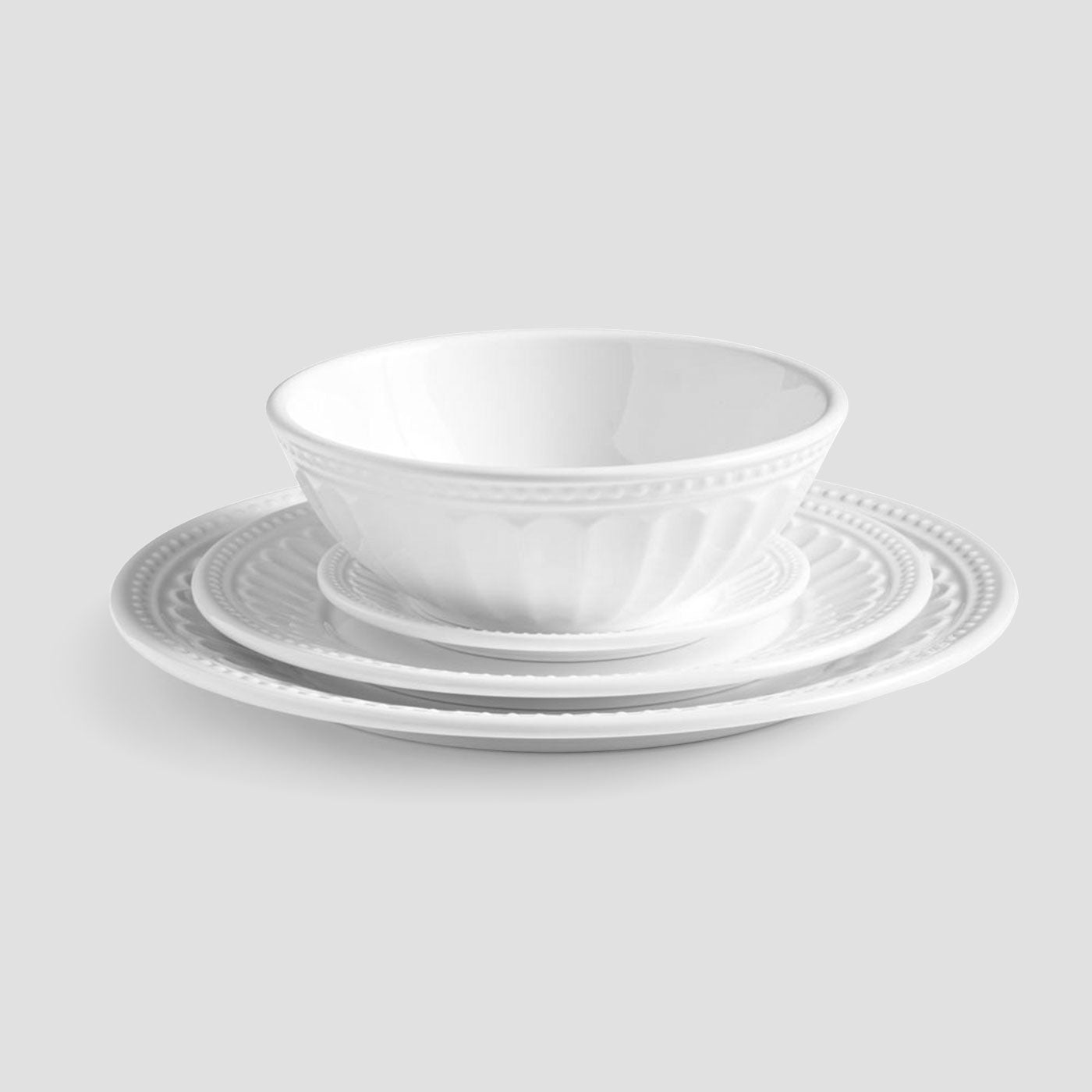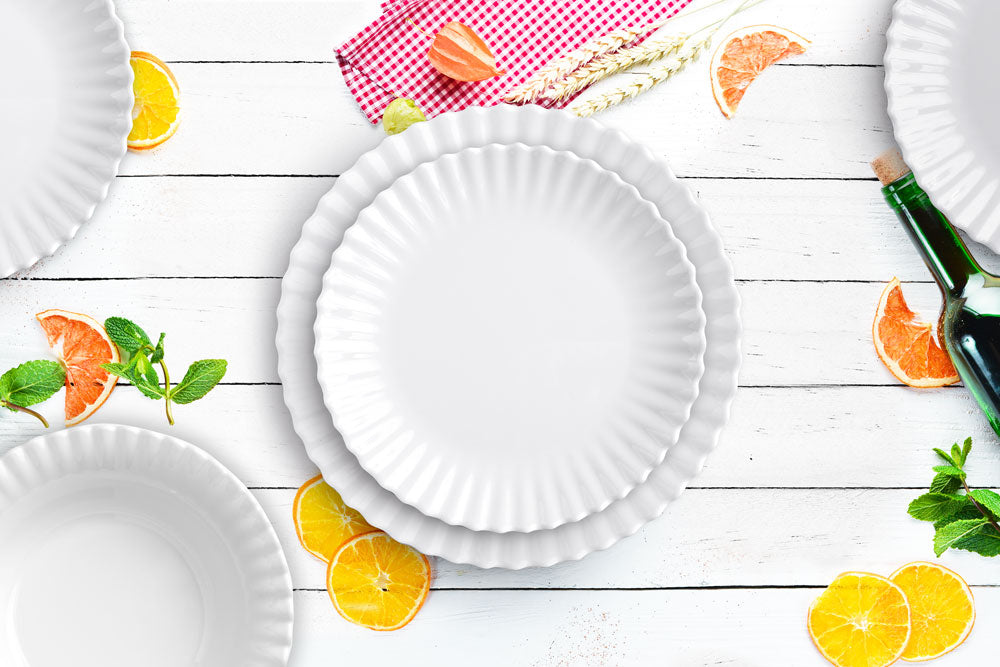 Our Patio Luxe Lightweight Melamine features a slightly lighter weight than our Luxe Melamine, but is still substantial enough for both entertaining and daily use. Featuring a nostalgic "paper plate" design, this dinnerware is sure to bring some fun to your table.