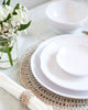 Our Pearl dinner plate features a delicately hammered texture and crisp white design. This dinner plate from our Pearl series is perfect for year round dining, and with its simple elegance, it will definitely impress your guests on any occasion.