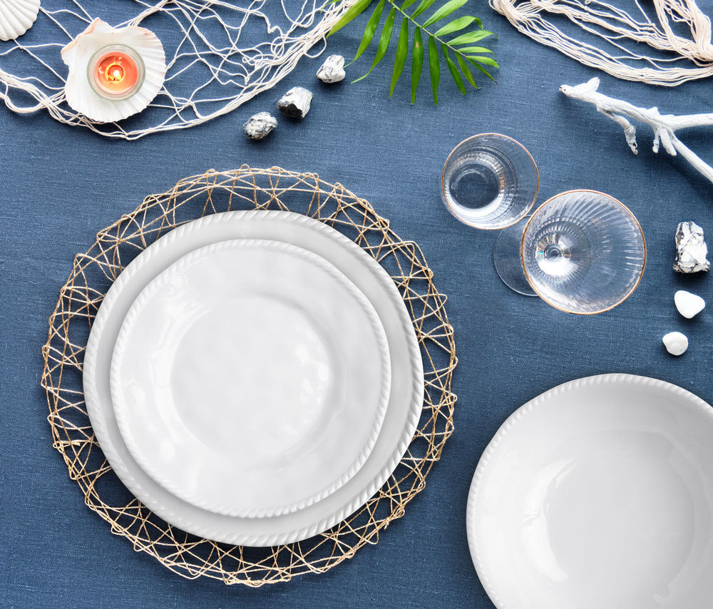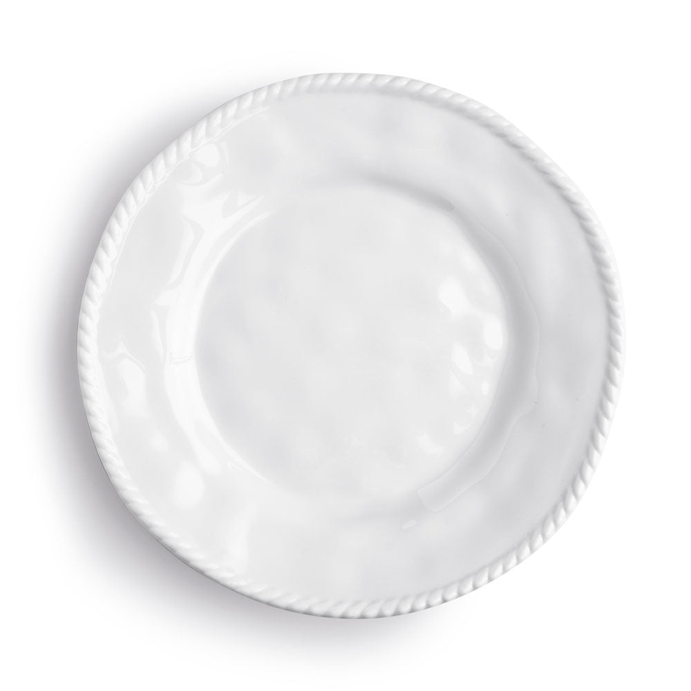 The Portsmouth Nautical White Melamine Dinnerware features a nautical rope border, elevated by our signature luxe white melamine and pairs perfectly with our Portsmouth serveware.