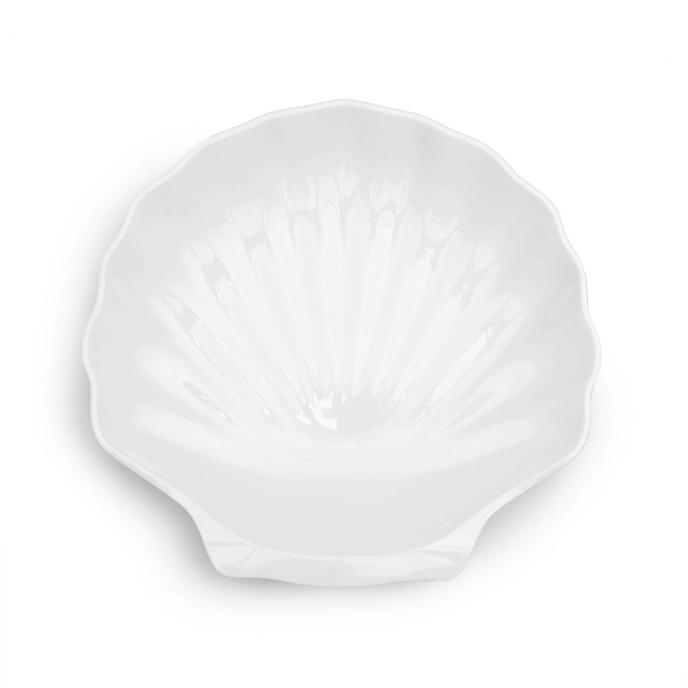This Shell Platter in classic white is perfect for both indoor and outdoor dining. Made of 100% melamine, this BPA free serving platter is virtually unbreakable and easily mistaken for ceramic or porcelain.