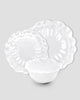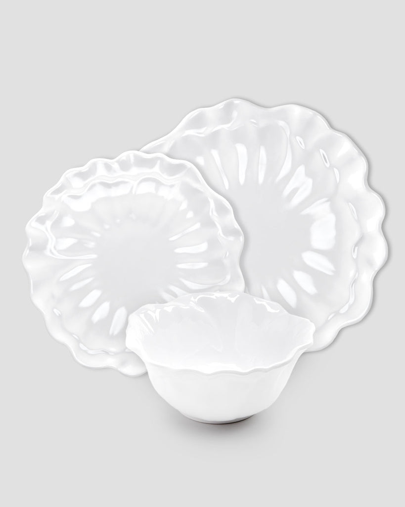 Our Peony 12pc dinnerware set in white features a pretty floral shaped design. Simply charming, this 12pc dinnerware set is a bouquet on any tablescape.