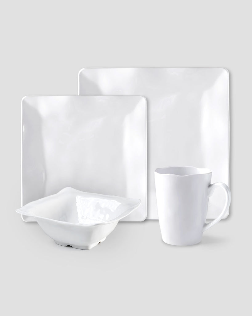 Ruffle White Melamine Square 16pc Dinnerware Set