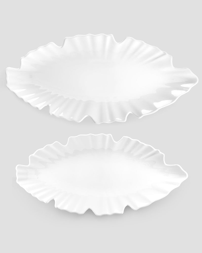 Our Zen leaf 2pc platter set in white features tropical designs perfect for both indoor and outdoor dining. Made of 100% melamine, this BPA free serveware is virtually unbreakable and resembles ceramic or porcelain.