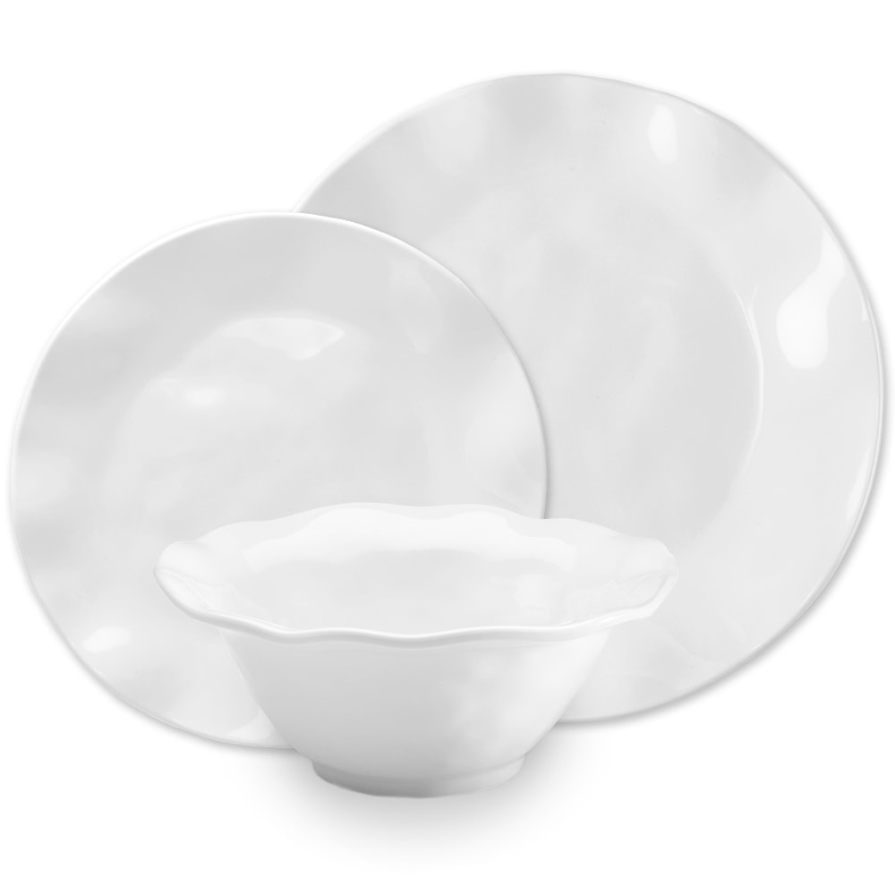 Ruffle White Melamine Round 12pc Dinnerware Set
