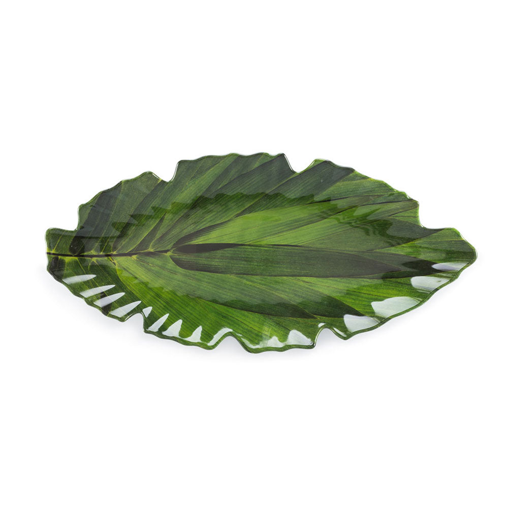 Our Zen small leaf platter in green features tropical designs perfect for both indoor and outdoor dining. Made of 100% melamine, this BPA free serveware is virtually unbreakable and resembles ceramic or porcelain.