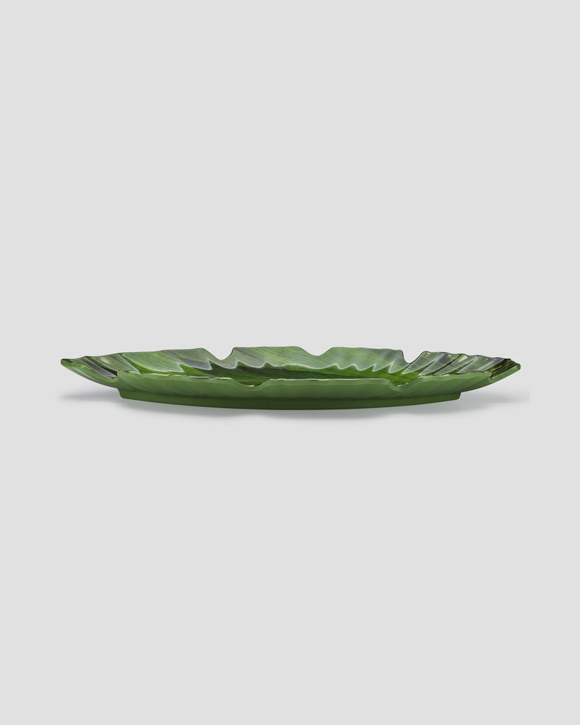 Our Zen small leaf platter in green features tropical designs perfect for both indoor and outdoor dining. Made of 100% melamine, this BPA free serveware is virtually unbreakable and resembles ceramic or porcelain.