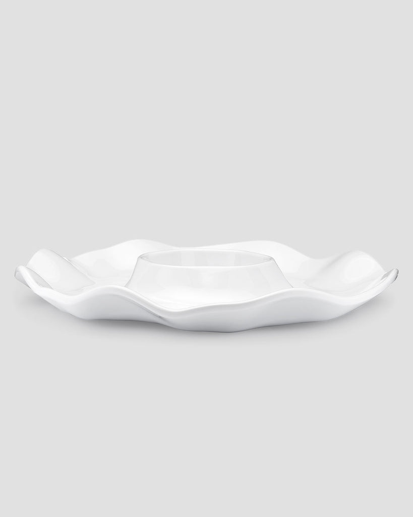 Our Ruffle chip & dip platter in white features our signature ruffle textured design. The ultimate in simple elegance, the Ruffle collection is perfect for year-round, indoor and outdoor dining and promises to help make entertaining easy and fun.